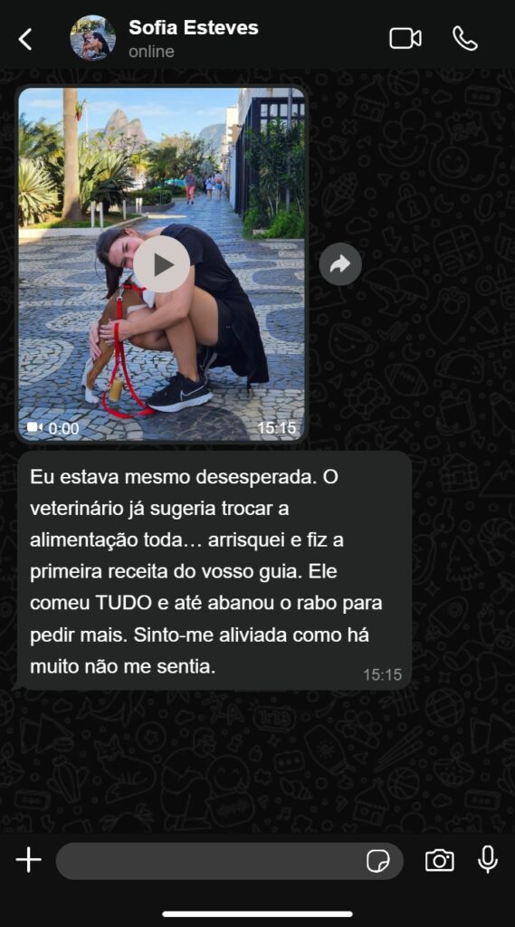 Vê os testemunhos reais de tutores que trocaram a ração por comida natural… e hoje têm animais mais felizes, mais ativos e livres de problemas que antes pareciam “normais”.